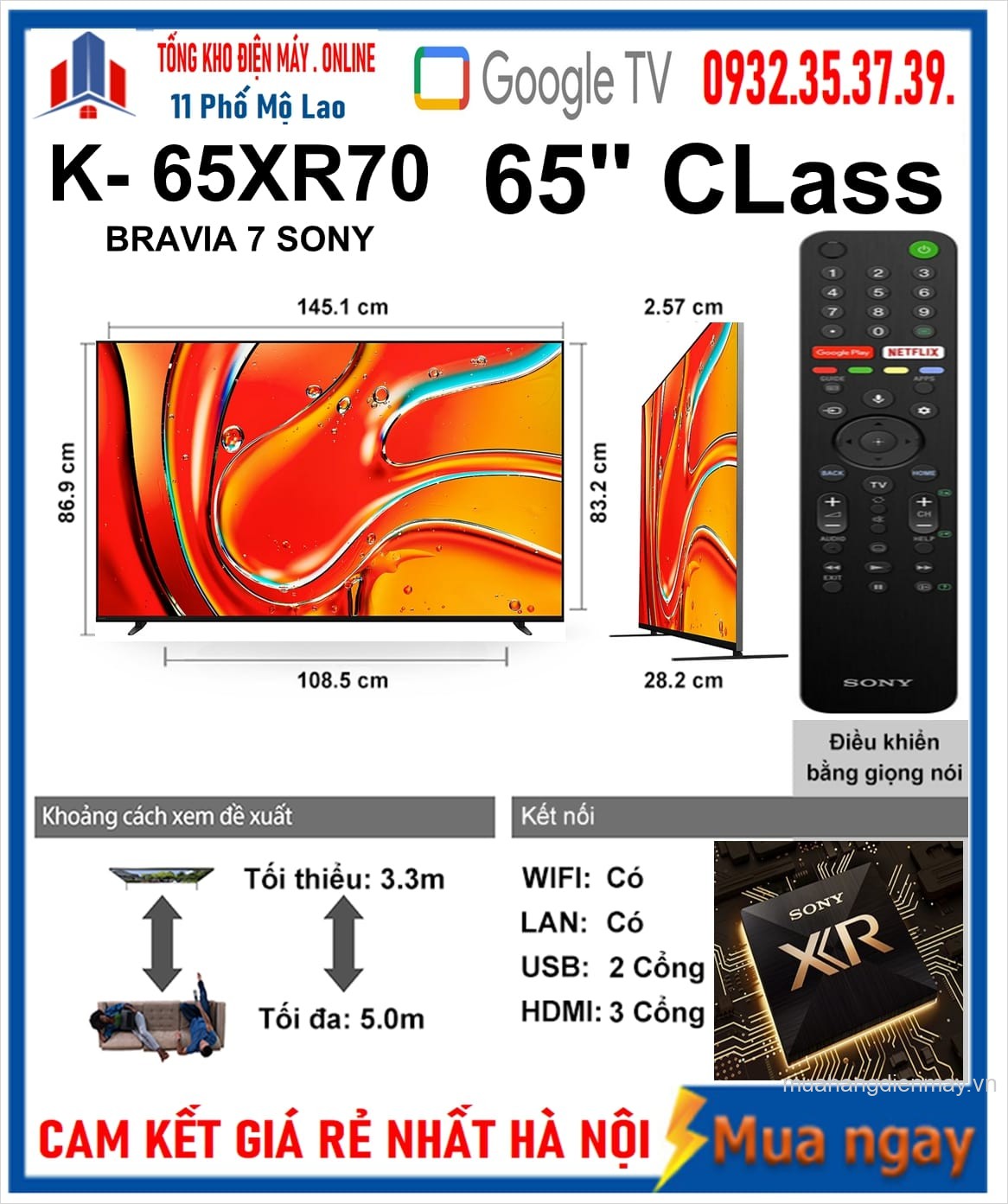 - Google Tivi MiniLED Sony 4K 65 inch K-65XR70 thuộc dòng tivi cao cấp của Sony được trình làng vào năm 2024, là phiên bản kế nhiệm của dòng Google Google Tivi MiniLED Sony 4K 65 inch K-65XR70. Sở hữu thiết kế One Slate với cạnh viền cực thanh mảnh cho cảm giác như không viền. Khi nhìn từ mặt trước trong lúc trình chiếu nội dung trên màn hình, đường viền như biến mất khỏi tầm nhìn của bạn, giúp mang đến trải nghiệm xem đắm chìm, không bị xao nhãng.