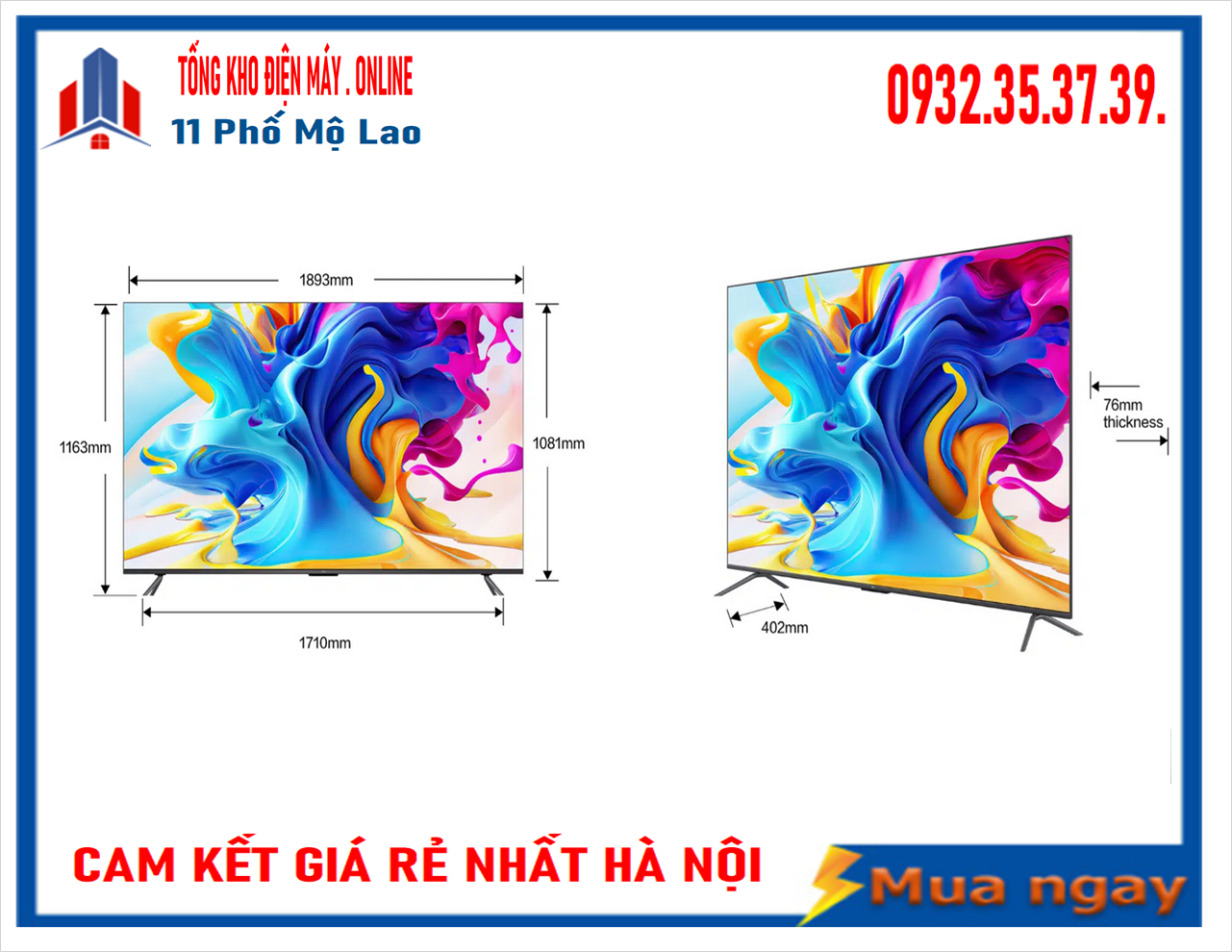 Kích thước Tivi TCL QLED 4K 85 Inch 85C645