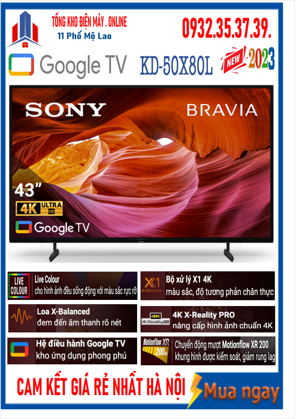 Với thành công từ sản phẩm Google Tivi Sony 4K 50 inch KD-50X80K được ra mắt năm 2022, Sony ra mắt phiên bản năm 2023 Google Tivi Sony 4K 50 inch KD-50X80L đáp ứng đa dạng trải nghiệm hình ảnh sắc nét nhờ độ phân giải 4K, màn hình lớn 50 inch với viền mỏng, bộ xử lý X1 4K HDR Processor cùng âm thanh vòm Dolby Atmos sống động, công nghệ loại bỏ tiếng ồn S-Master Digital Amplifier, hệ điều hành Google TV thân thiện dễ sử dụng, trợ lý ảo Google Assistant có tiếng Việt,… mang đến cho người xem trải nghiệm giải trí phong phú.