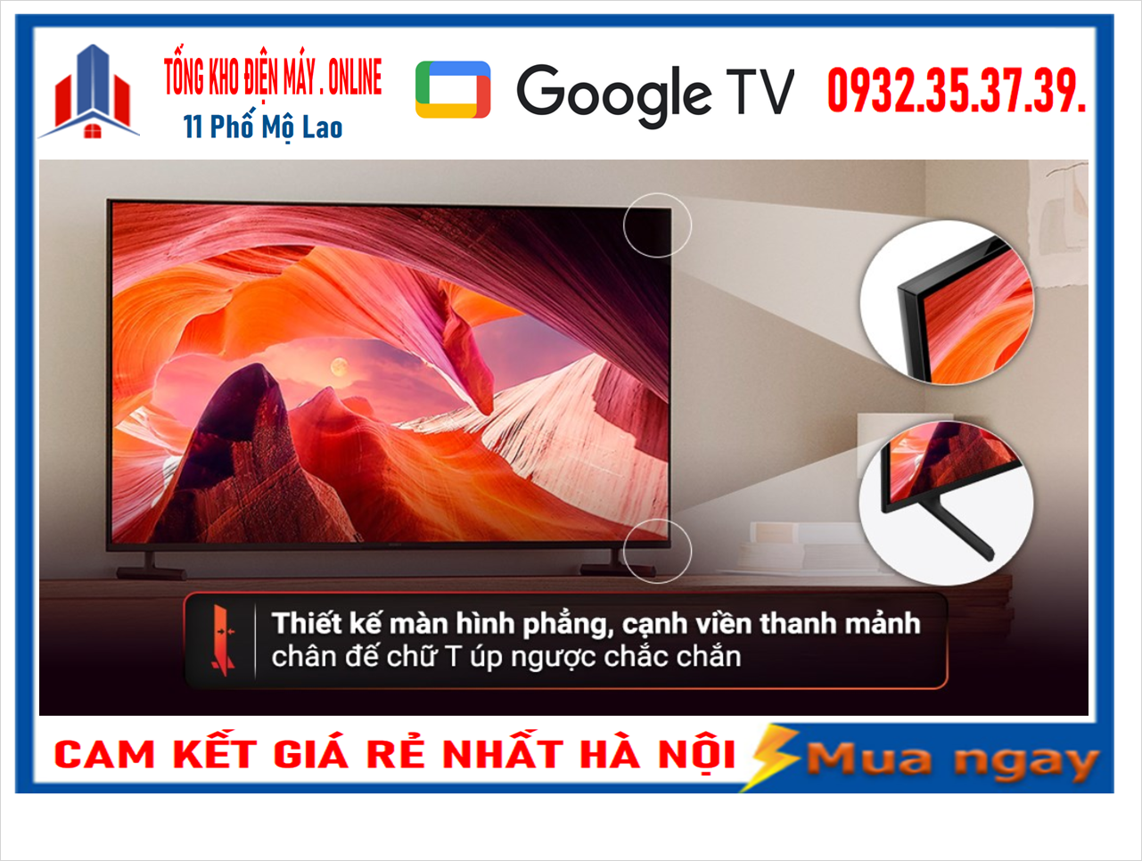 ❑ Google tivi Sony có thiết kế tinh tế với đường viền siêu mỏng, chân đế chữ V bằng nhựa có vân úp ngược chắc chắn, tạo điểm nhấn cho không gian thêm sang trọng, hiện đại.