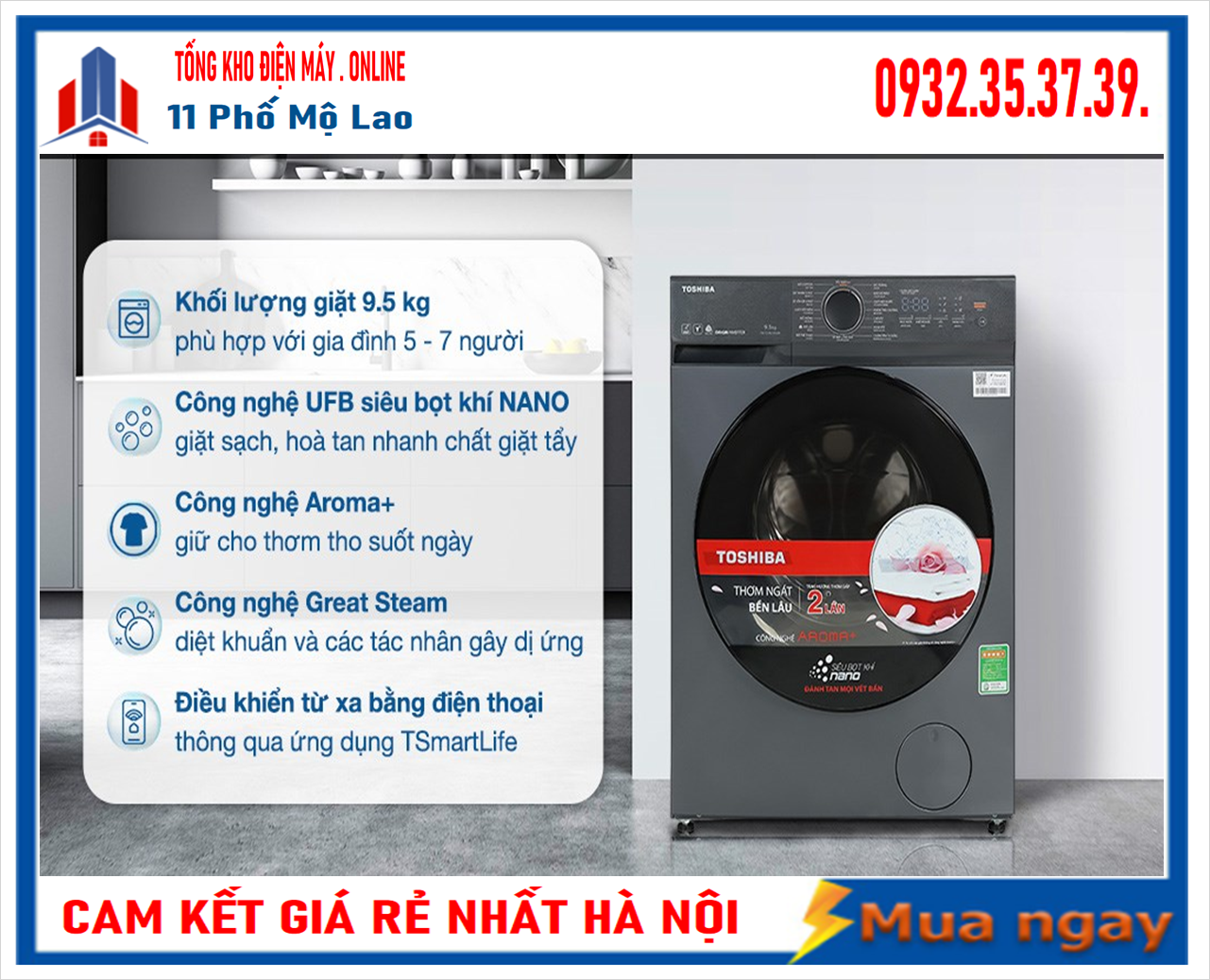 Máy giặt Toshiba Inverter 9.5 kg TW-T21BU105UWV(MG) mang thiết kế thanh lịch, gọn đẹp trong từng chi tiết, tích hợp 15 chương trình giặt đáp ứng nhu cầu giặt đa dạng trong gia đình, hỗ trợ công nghệ UFB siêu bọt khí NANO loại bỏ các vết bẩn cứng đầu trên quần áo dễ dàng, Great Steam diệt khuẩn mạnh mẽ, điều khiển từ xa linh hoạt qua kết nối Wifi và phần mềm TSmartLife tiện lợi.