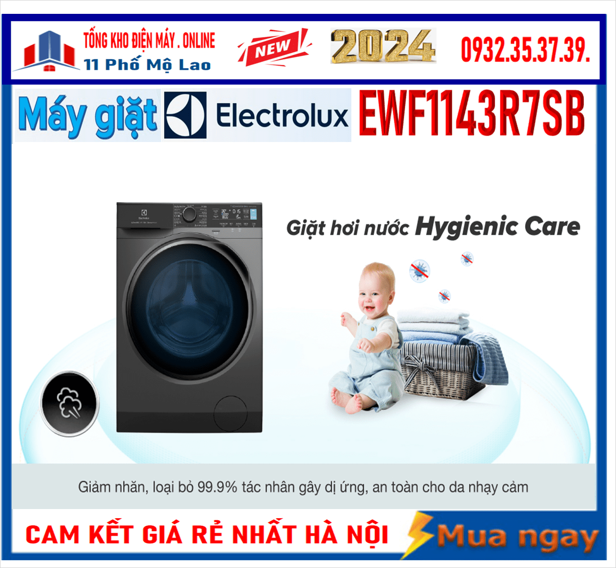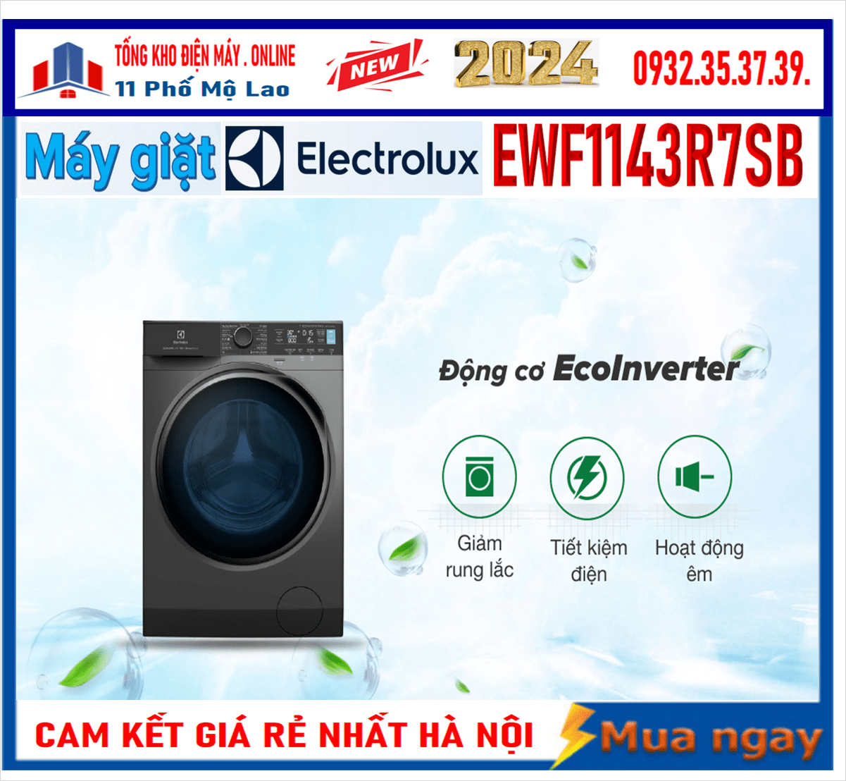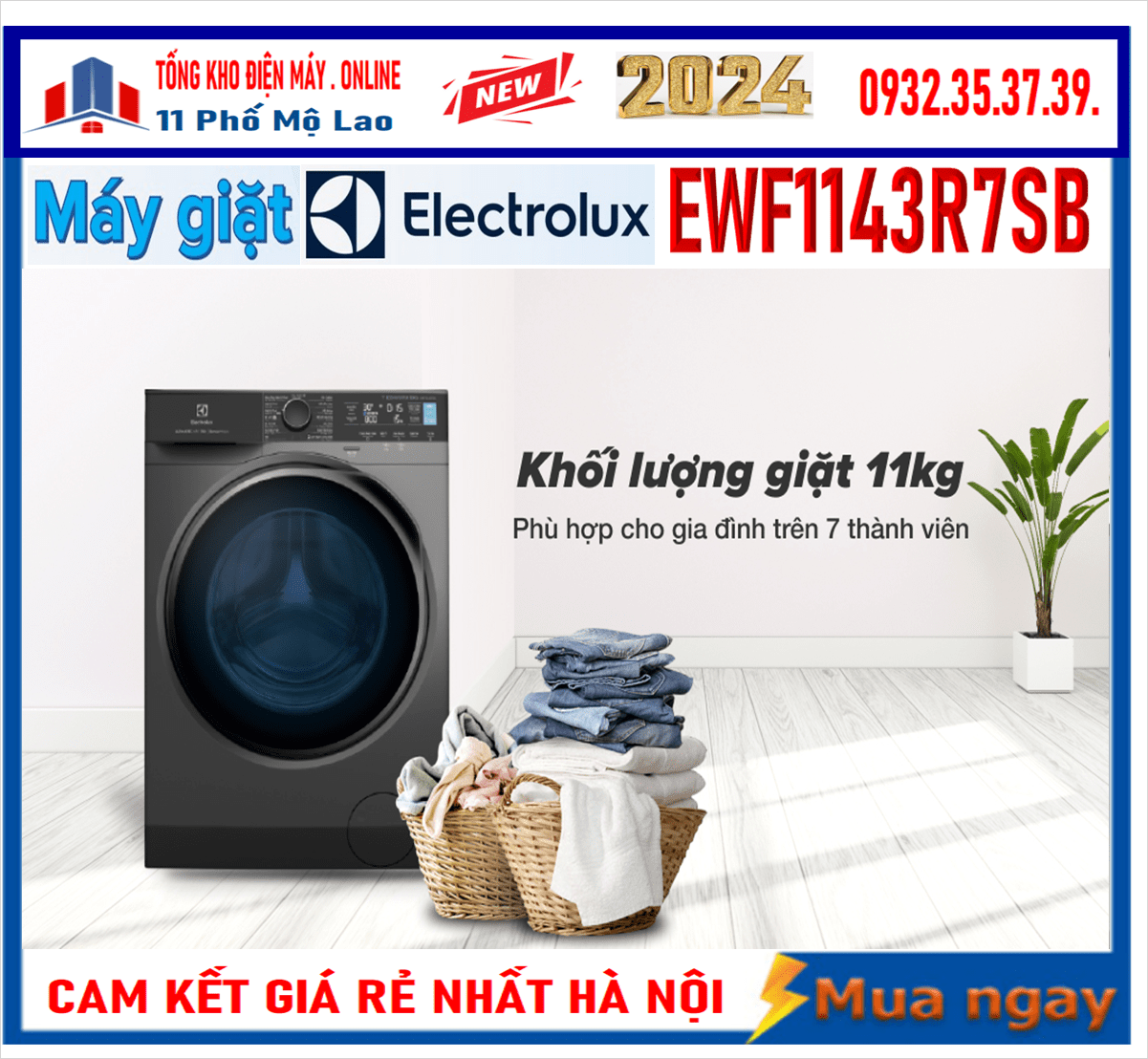 Nhìn chung, Máy giặt Electrolux Inverter 11 kg EWF1143R7SB Mới 2024 là sự lựa chọn đáng cân nhắc cho các gia đình, với khả năng giặt sạch hiệu quả, tiết kiệm điện, tiết kiệm nước và nhiều chương trình giặt đa dạng.