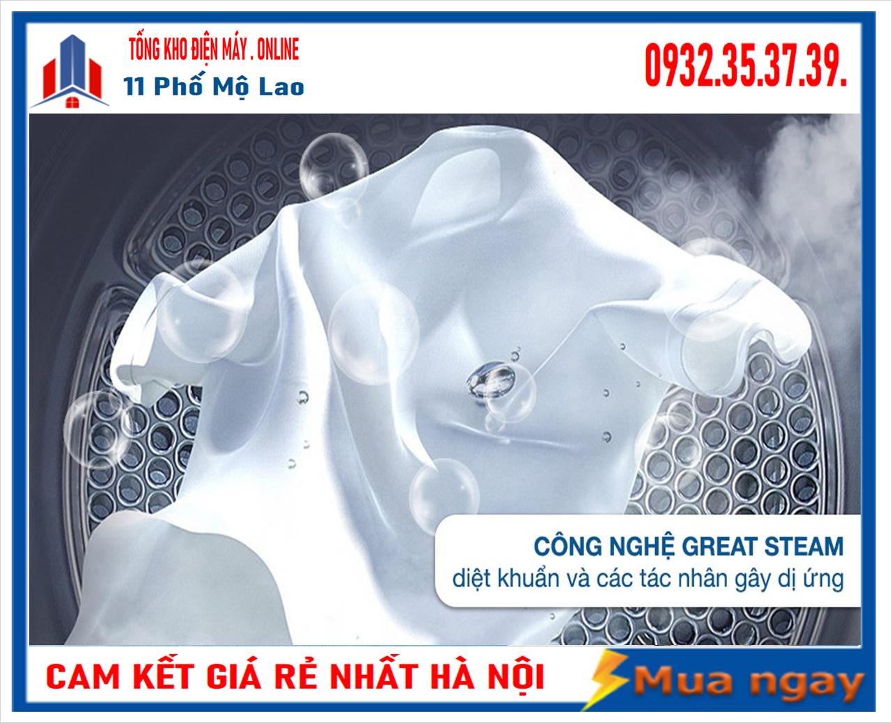 Những vết bẩn bám trên quần áo sẽ được làm mềm bằng hơi nước nhờ công nghệ GREAT STEAM, mang lại khả năng làm sạch sâu đồng thời loại bỏ các phân tử gây mùi khó chịu bám trên quần áo.