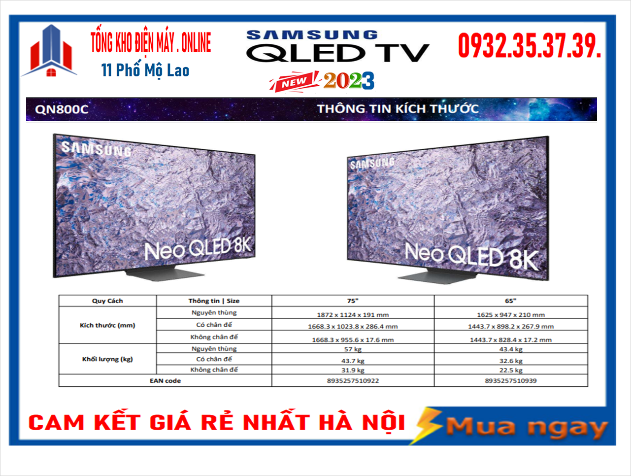 THÔNG TIN KÍCH THƯỚC TIVI SAMSUNG QN75QN800C MỚI 2023