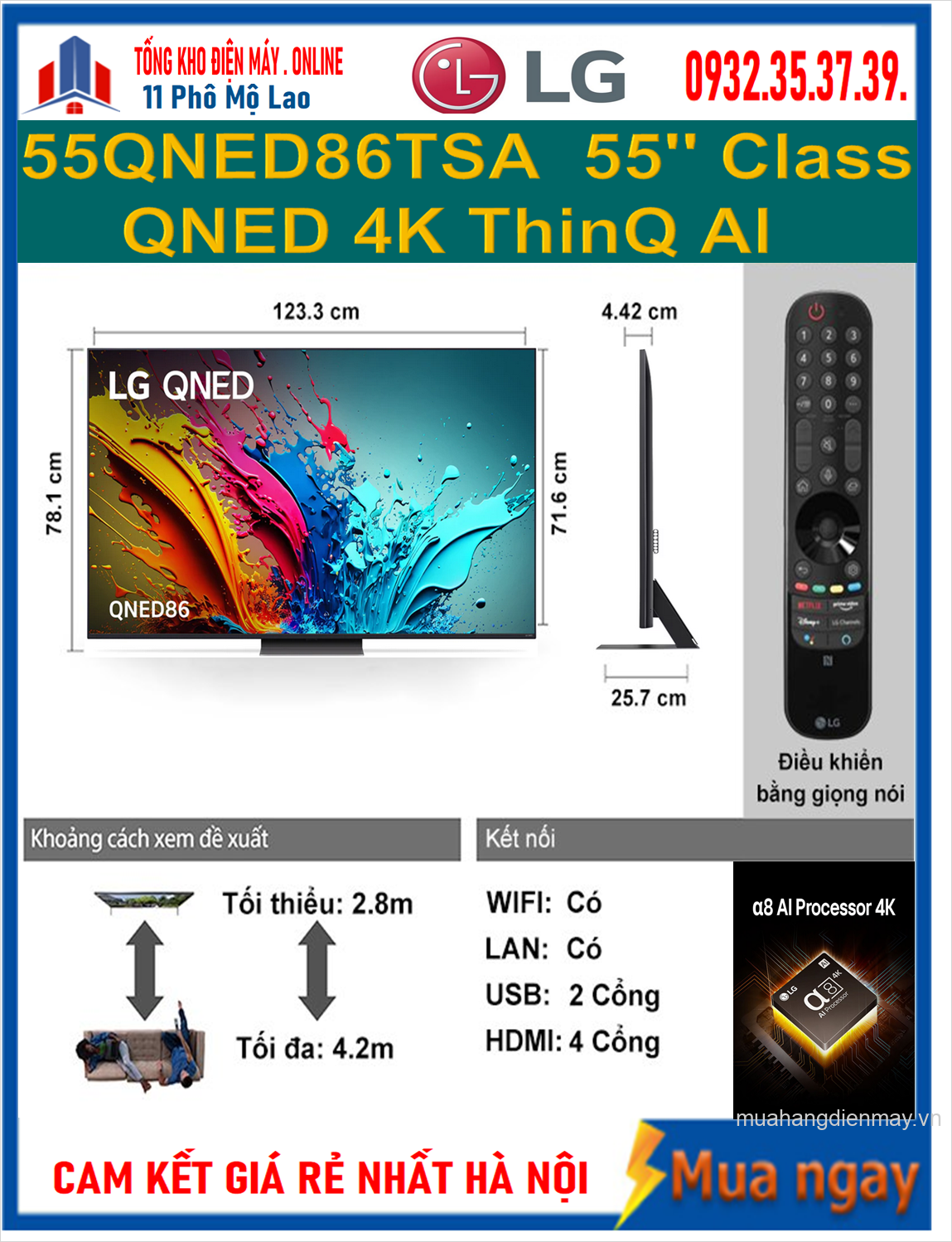 Có thể thấy rằng, Smart Tivi LG QNED 4K 55 Inch 55QNED86TSA xứng danh là sản phẩm nghe nhìn cao cấp của một trong những thương hiệu điện tử hàng đầu trên thế giới. Không chỉ được chế tác với vẻ ngoài cực kỳ sang trọng mà tivi còn là kết tinh của sự kết hợp hoàn hảo giữa các công nghệ tiên tiến và tính năng thông minh. Đây chắc hẳn là sự lựa chọn trên cả tuyệt vời cho những ai ưa chuộng lối sống hiện đại trong thời đại mới.