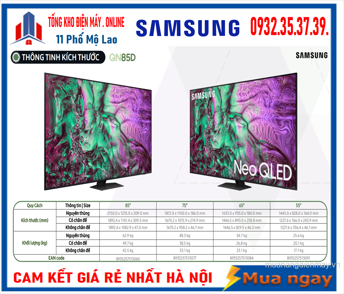 Smart Tivi Neo QLED 4K 55 inch QA55QN85D với thiết kế siêu mỏng, hiển thị 4K, âm thanh đa chiều sống động và nhiều tiện ích hỗ trợ, tivi này là lựa chọn phù hợp cho mọi gia đình Việt.