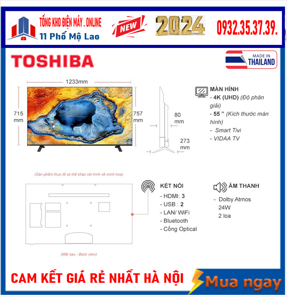 Thông số kỹ thuật Smart Tivi Toshiba 4K 55 inch 55E330NP