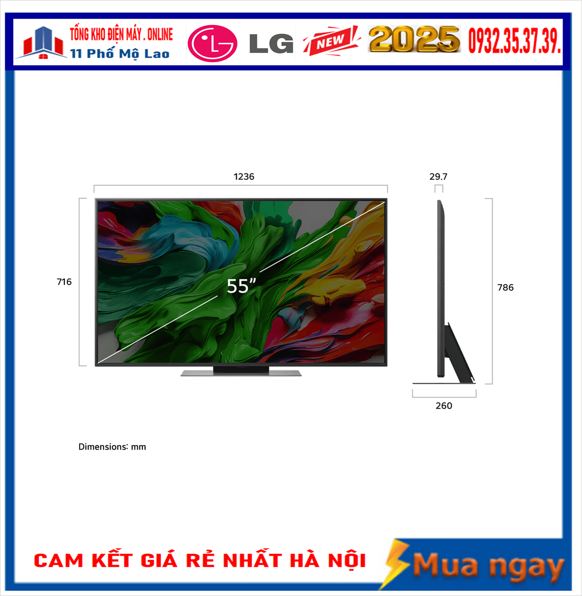 Kích thước không chân đế: 1236 x 716 x 29.7 mm