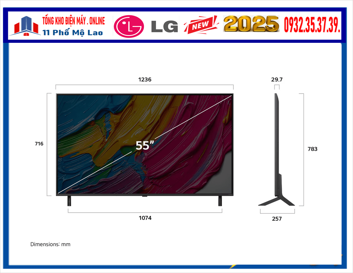 Kích thước không chân đế: 1236 x 716 x 29.7 mm