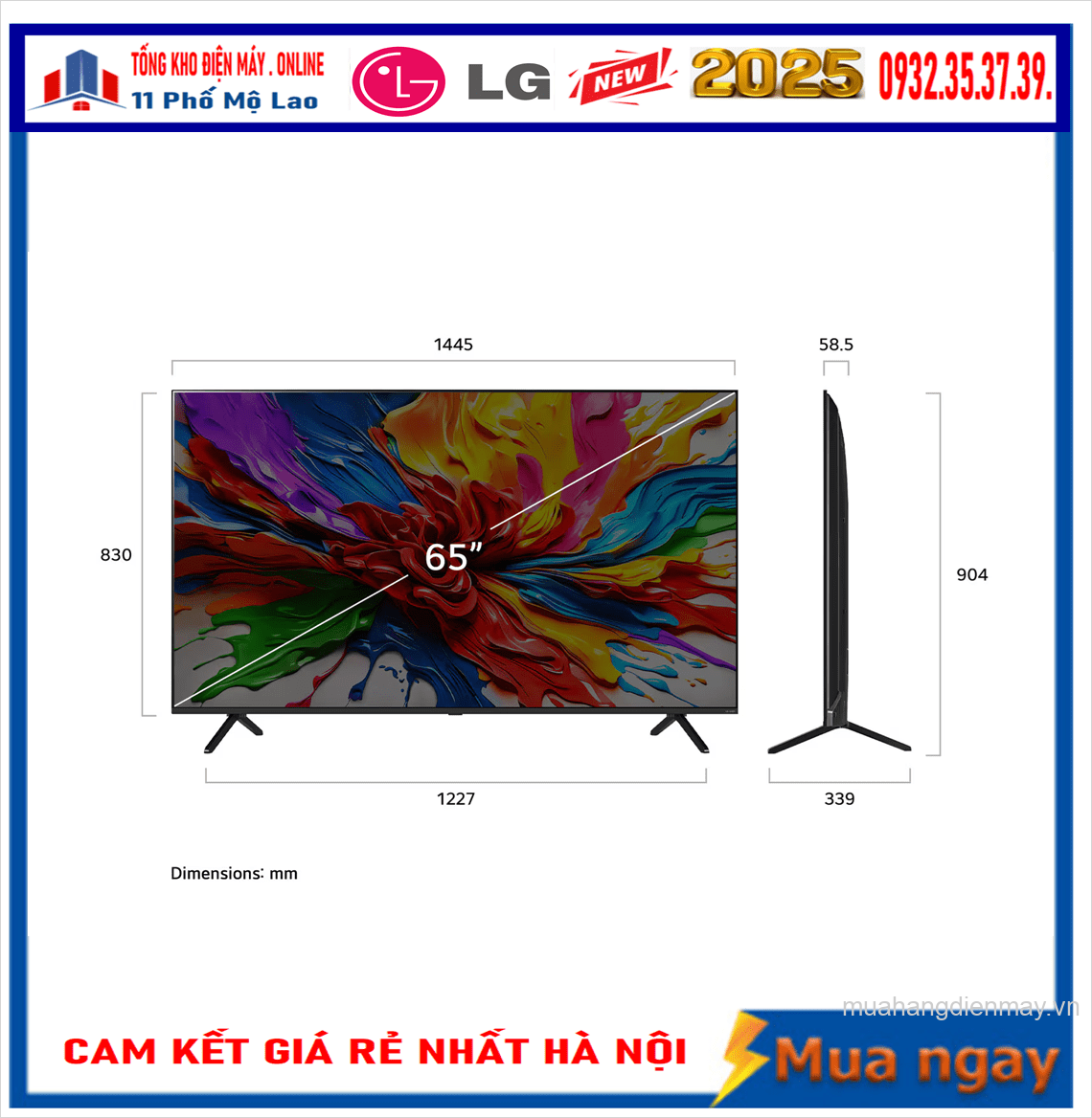 - Màn hình 65 inch hoàn thiện thiết kế nội thất của các căn phòng có diện tích vừa và lớn, mang đến vẻ đẹp đẳng cấp, phong cách thời thượng cho không gian sống của bạn.