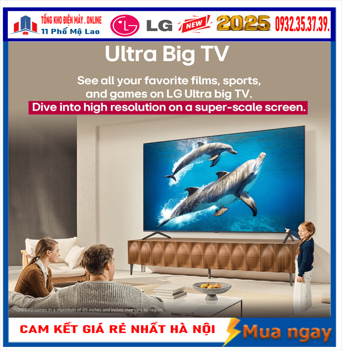 - Tivi QNED LG AI 4K 75 inch 75QNED92ASA New [2025] thiết kế thanh lịch, màn hình rộng, đường viền thanh mảnh, khóa chặt tầm nhìn của bạn vào chương trình giải trí hấp dẫn đang chiếu trên màn hình.