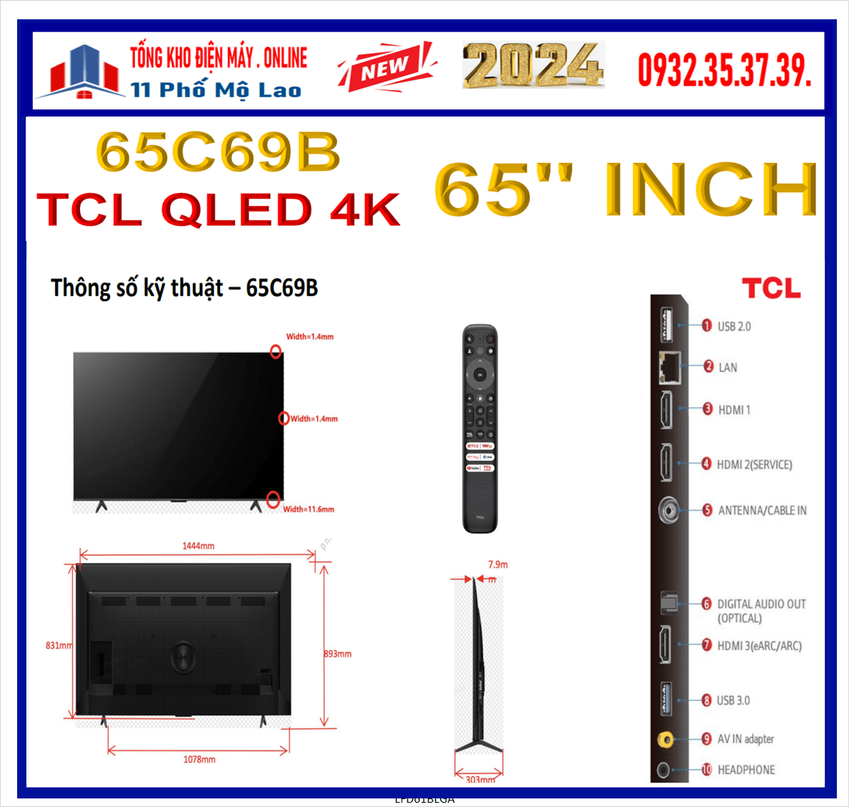 1. HÌNH ẢNH TIVI TCL 65 INCH QLED 4K 65C69B